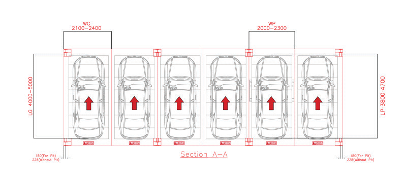 Puzzle can have up to 8 levels above ground level and 3 levels in pit. Horizontally it can have up to 10 grids. One grid (except for the topmost level) is to be kept empty for puzzle operation. To drive out or park any car on platform at upper level, the Parking system puzzles itself and brings down the respective platform. Entry level platforms are driven only horizontally. Upper level platforms are driven horizontally as well as vertically while Upper most platforms are driven only vertically using traction and ropes. Choose Multi Level Puzzle Car Parking System Manufacturer in Pune.